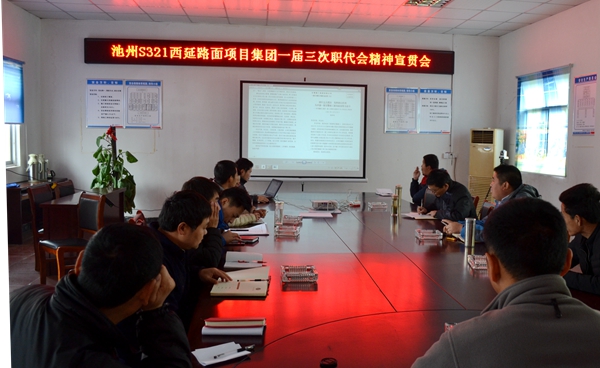 1月15日,在公司的統(tǒng)一部署下,路面公司各項(xiàng)目組織召開集團(tuán)一屆三次職代會(huì)精神宣貫會(huì),集中學(xué)習(xí)傳達(dá)會(huì)議精神,認(rèn)真分析當(dāng)前各項(xiàng)目生產(chǎn)面臨的形勢(shì)任務(wù),精心謀劃新一年的工作。