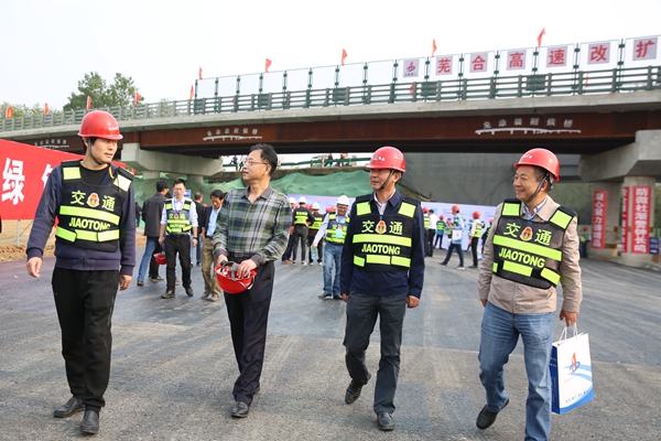 10月17日下午,中國公路學會2018標準化年會代表到蕪合改擴建02標項目進行觀摩交流,蕪合高速改擴建項目辦主任于春江、公司副總經理杜海峰等陪同。