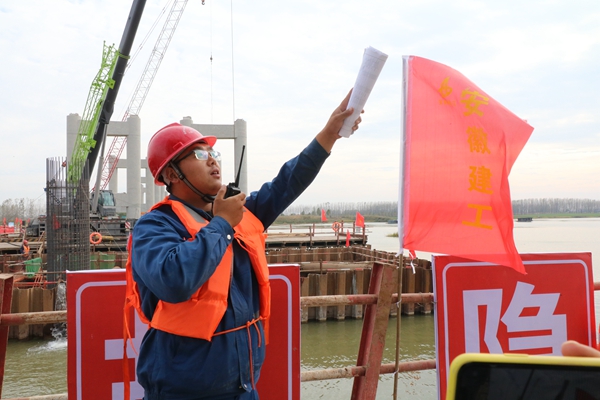 固蚌、蕪黃高速作為省委省政府規(guī)劃的“縣縣通高速”,將在2021年建成通車,這對于今年3月份項目才正式開工的全體建設(shè)者來說,無疑是個巨大挑戰(zhàn)。在淮河岸邊、澮河之上,青年黨員陸志康正在組織打樁機施工?!皾液犹卮髽蜷L2.6km,是安徽省首座組合梁系桿拱橋,引橋采用鋼板組合梁,建成后將成為澮河上的新地標(biāo),”他自信地說。不論是疫情防控后的復(fù)工復(fù)產(chǎn),還是抗洪期間,他都始終沖鋒在前,白天在一線蹲守,晚上研究解決問題的辦法。圓月初升,各個工位上的聚光燈,點燃寂靜夜空,將夜晚照得如同白晝明亮,陸志康乘著夜色仍在混凝土澆筑工點,忘記了時間,只為了一個目標(biāo),就是要把項目又好又快建成。