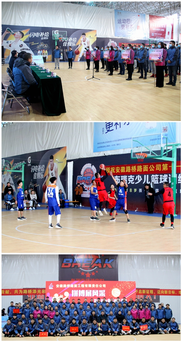 為豐富職工文化生活,增進(jìn)職工溝通交流,促進(jìn)企業(yè)文化建設(shè),提高團隊凝聚力,12月30日至31日,安徽路橋路面公司第十一屆職工籃球賽在合肥布瑞克籃球館成功舉辦。公司黨委委員、紀(jì)委書記林緒坤,工會主席楊建強出席開幕式。