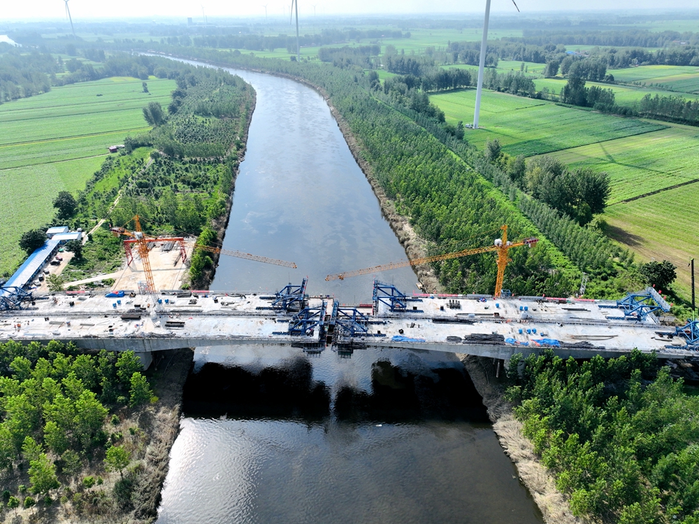 在皖北,面對緊張的工期和7月下旬以來連續(xù)的高溫天氣,徐淮阜高速淮北段項目巧施“涼策”,通過不斷優(yōu)化施工方案,合理配置資源和安排工序,以及采用“干兩頭、歇中間”的錯峰作業(yè)方式,推動生產高效運轉。項目部還積極對各類混凝土配合比和外加劑進行優(yōu)化,并在工后及時進行覆蓋和灑水養(yǎng)護,確保了高溫天氣下混凝土質量,保障水穩(wěn)和橋梁規(guī)?;┕ぁ安粩鄼n”。