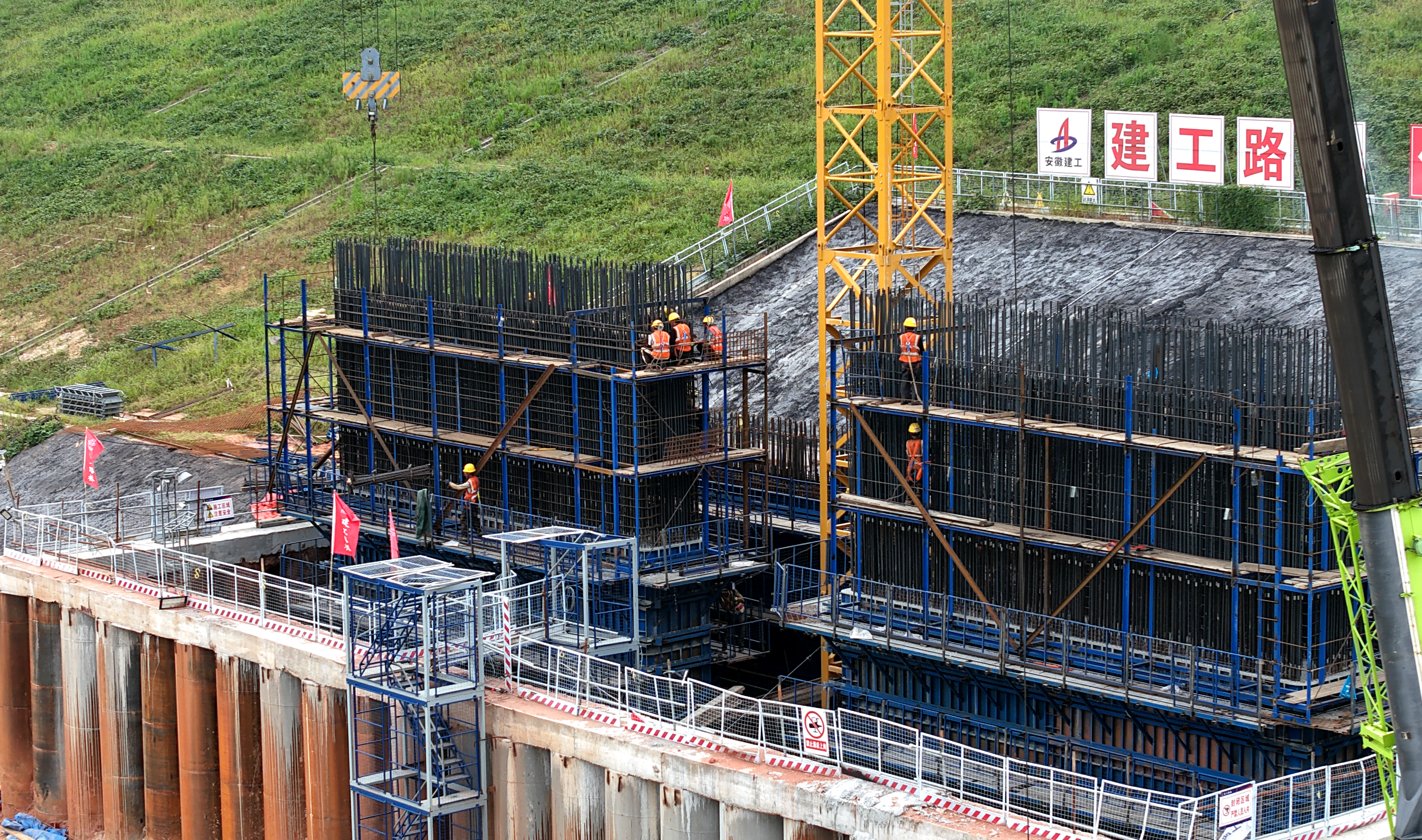 引江濟淮特大橋共設4座主墩承臺,全程采用C30混凝土一次性連續(xù)澆筑完成,累計澆筑混凝土約3843方。針對深基坑施工空間受限的核心難題,項目部制定專項施工方案,多次組織技術人員進行現(xiàn)場勘察與施工模擬推演,持續(xù)優(yōu)化施工流程與人員分工,并合理規(guī)劃施工通道,最大限度提升施工效率,確保各工序無縫銜接。