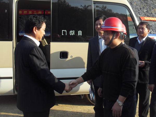 黃省長首先在施工現(xiàn)場聽取了績黃高速項目辦主任方昱對于工程建設(shè)情況的匯報。聽完匯報后,黃省長對公司和項目部的工作給予充分肯定和高度評價。他說,“省路橋公司是本省施工的龍頭企業(yè),代表本省的形象,希望你們再接再厲,繼續(xù)做好規(guī)范化施工,高效管理,抓住當(dāng)前機(jī)遇,努力打造優(yōu)質(zhì)工程,不斷提升企業(yè)形象,開辟新的市場,繼續(xù)做大做強(qiáng)?!蓖艨偙響B(tài),“省路橋公司在黃省長的關(guān)懷下,近年來企業(yè)改制改革方面取得了一定成效,企業(yè)取得了巨大發(fā)展,我們將繼續(xù)做好施工規(guī)范化、精細(xì)化管理,在省領(lǐng)導(dǎo)的關(guān)心與支持下,我們一定會抓住機(jī)遇、迎接挑戰(zhàn),把企業(yè)做大做強(qiáng)”。
