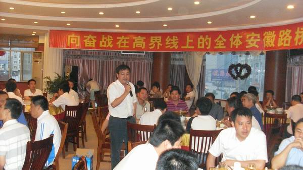晚上,項目部安排慶功晚宴,公司總經理汪衛(wèi)東攜路面公司領導班子成員,特地來到工地與大家歡聚一堂。