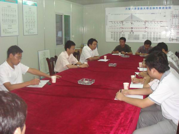 針對(duì)北岸引橋箱梁砼澆筑后,對(duì)成型構(gòu)件出現(xiàn)的問(wèn)題,由全體技術(shù)人員先找原因討論解決辦法,隨后,崔總對(duì)所提出問(wèn)題逐一進(jìn)行了原因分析,提出了解決的辦法。大家感到這種有針對(duì)性地培訓(xùn),接受的快,收效很大。最后,項(xiàng)目經(jīng)理江仲明要求在當(dāng)前工程沖刺關(guān)鍵時(shí)刻,所有技術(shù)人員要切實(shí)增強(qiáng)質(zhì)量意識(shí),強(qiáng)化質(zhì)量工作責(zé)任,加強(qiáng)質(zhì)量考核工作,并強(qiáng)調(diào)各部門、各作業(yè)隊(duì)要對(duì)檢查出的質(zhì)量問(wèn)題嚴(yán)肅處理,認(rèn)真落實(shí)整改。