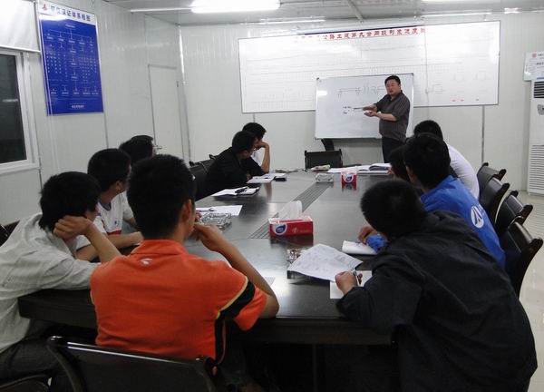為了提高廣大技術(shù)員的綜合素質(zhì)和技術(shù)能力,加強內(nèi)部交流和溝通,同時為了更好的貫徹執(zhí)行項目2010年內(nèi)訓(xùn)工作計劃,5月23日晚,橋梁技術(shù)質(zhì)量內(nèi)訓(xùn)課程在宜巴高速09標如期舉行,項目總工吳昊擔(dān)任課程主講人。