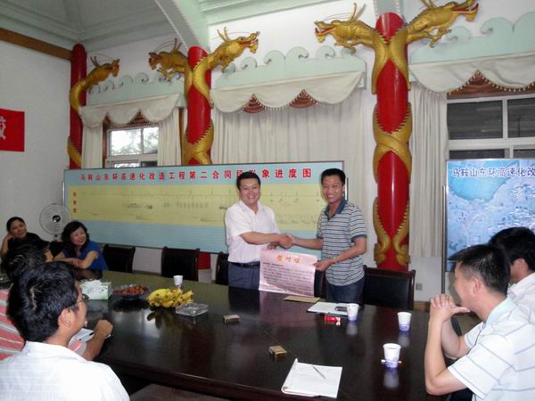 最后,在一陣熱烈的掌聲中,胡主席向我部項(xiàng)目經(jīng)理冷峰遞交了慰問(wèn)信和慰問(wèn)金。