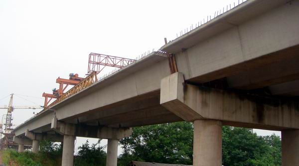 江南的7月是個(gè)多雨的季節(jié),自進(jìn)入7月以來,青弋江項(xiàng)目遇上連日暴雨,長江水位猛漲,青弋江水位也隨長江水位增高和上游陳村水庫泄洪而增高,一度超過了98年同期水位,致使對岸紅星圩大堤被縣防指封堵,東岸施工平臺(tái)被淹,被迫停工半月之余。再加上受洪水、停電、停水等不利因素的影響,項(xiàng)目生產(chǎn)出現(xiàn)困難,但項(xiàng)目部及時(shí)調(diào)整施工方案和對策,不等不靠,采取靈活方案,積極進(jìn)行施工生產(chǎn):主橋不能干就干引橋,白天不能干就晚上干,停電就自己發(fā)電,沒有水就挑水或買水……努力克服重重困難,保工期、保質(zhì)量。到月底即7月31日止,共完成32片30M箱梁的安裝,主橋已完成5#墩的7#塊、6#墩的5#塊的澆筑任務(wù),預(yù)計(jì)8月底能完成主橋全跨的合攏任務(wù)。9月份全橋?qū)⑦M(jìn)入上部橋面系的施工,全橋預(yù)計(jì)在10月底全部完工。