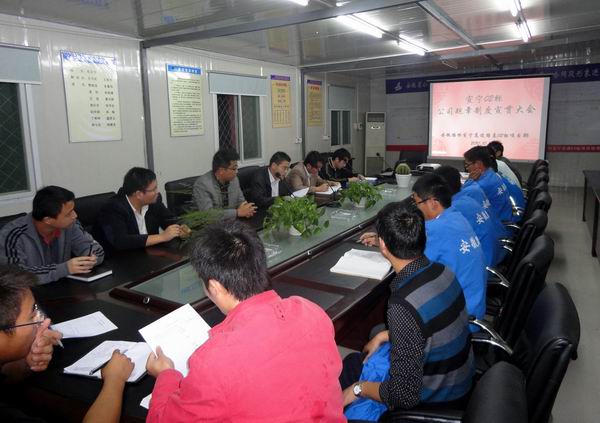 項(xiàng)目總工王守武擔(dān)任本次本次活動(dòng)的主持人。王總工首先全體項(xiàng)目員工重點(diǎn)強(qiáng)調(diào)了本次規(guī)章制度學(xué)習(xí)會(huì)議的重要性,隨后安排主辦會(huì)計(jì)高偉、項(xiàng)目辦公室陳凱等幾位同志對(duì)公司財(cái)務(wù)、人力資源、辦公室等部門的職能逐條進(jìn)行介紹,并對(duì)不同職能部門的管理制度作深入細(xì)致的闡述和解釋。