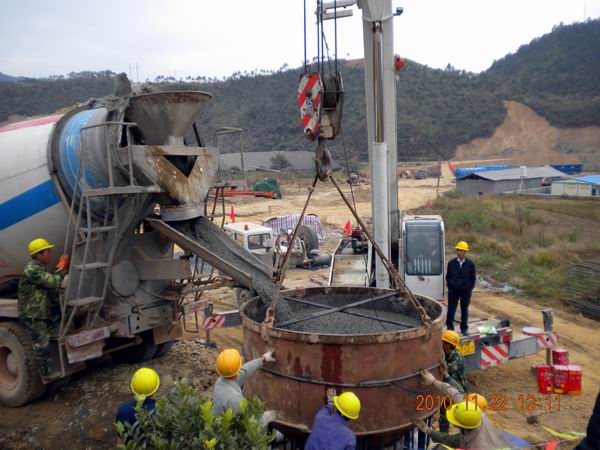 12時(shí)08分,在這個(gè)風(fēng)和日麗的午后,第一孔水下灌注樁樁基灌注工作正式開(kāi)始。灌注過(guò)程中,我部遵照“嚴(yán)控質(zhì)量關(guān),嚴(yán)把安全關(guān)”的要求進(jìn)行施工,項(xiàng)目部技術(shù)員與安全員均到現(xiàn)場(chǎng)進(jìn)行了詳細(xì)的施工技術(shù)交底和安全技術(shù)交底。
