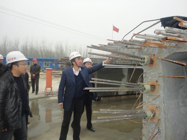 視察過程中,何站長對我部預制梁場的施工質(zhì)量、工藝給予了充分的肯定和贊揚,通過察看安全警示牌、詢問現(xiàn)場安全員,對我部安全工作的全面細致也豎起了大拇指,并對我安徽省公路橋梁工程公司表達了由衷的贊許。在肯定我們的工作成績的同時,何站長也要求我們要繼承和發(fā)揚安徽省路橋公司的優(yōu)良傳統(tǒng),細化工作、進一步提高工程質(zhì)量。