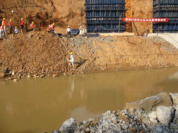下午16:30,在項目部會議室內(nèi)召開應(yīng)急演練動員會,就演練方案和應(yīng)急救援響應(yīng)程序向參演人員交底,并開展桌面演練,進一步熟悉應(yīng)急救援預(yù)案啟動和響應(yīng)程序。在演練現(xiàn)場,按照演練方案并結(jié)合桌面演練內(nèi)容,開展“山洪暴發(fā)”應(yīng)急救援演練。整個演練過程銜接緊密,配合默契。最后,由高駐辦安全專監(jiān)對演練效果進行評價,提出要進一步完善應(yīng)急響應(yīng)程序的寶貴意見。演練結(jié)束后,項目部防汛抗洪指揮小組召開總結(jié)會,積極討論不足之處和調(diào)整方案。