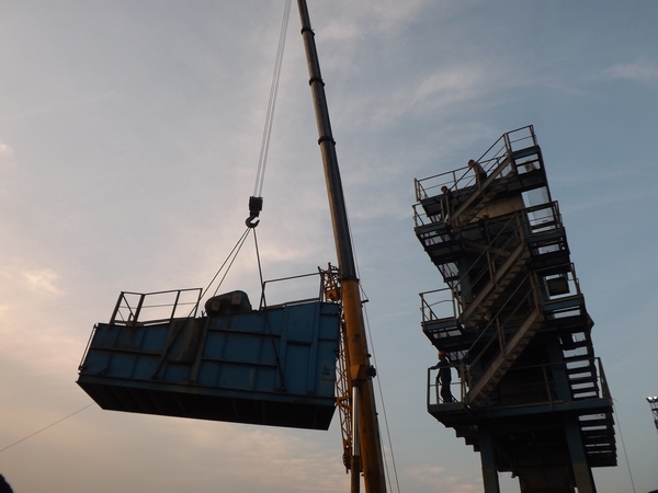 G205改建路面項(xiàng)目完成拌和站主樓吊裝 發(fā)布時(shí)間:2013年07月19日 來源:G205改建路面項(xiàng)目 發(fā)布人: 作者:楊艷峰 瀏覽:2752次 7月17日下午3時(shí),伴隨著響聲震天的鞭炮聲,兩輛大型吊車在安全技術(shù)人員和作業(yè)人員的通力協(xié)作下,安全有序地進(jìn)行拌和站主樓的吊裝。經(jīng)過全體施工人員的努力,于當(dāng)日下午6時(shí)30分完成拌和站主樓的吊裝。
